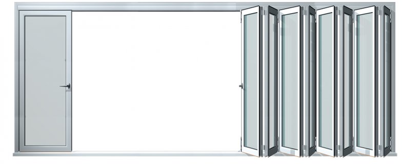 M19800 is an insulating system for folding doors with 50mm sash thickness and special rolling hinges of heavy duty type. The last vent may be used as an entrance door. The system offers two typologies: