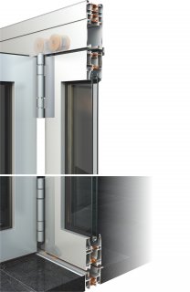 - Floor-standing solution, with the rolling hinges sliding on the bottom guide